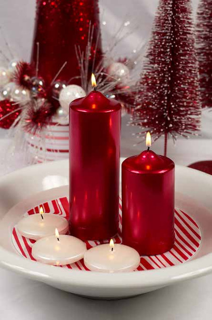 Create eye-catching centerpieces by mixing pillar heights on mirrored trays or decorative bases. Available in a range of bold and classic colors to match your décor.