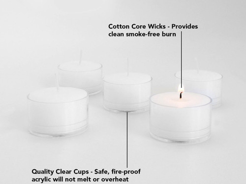 Crafted with high-quality paraffin wax and lead-free cotton wicks, these candles burn cleanly and smokeless. Housed in crystal-clear plastic cups made from 100% recycled material, the wax liquefies while burning to create a beautiful glow without drips, soot, or wax residue.