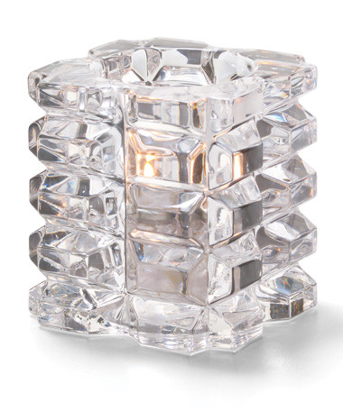 The multi-faceted surface of these votive lamps playfully refracts the candlelight creating a tantalizing display on the tabletop.