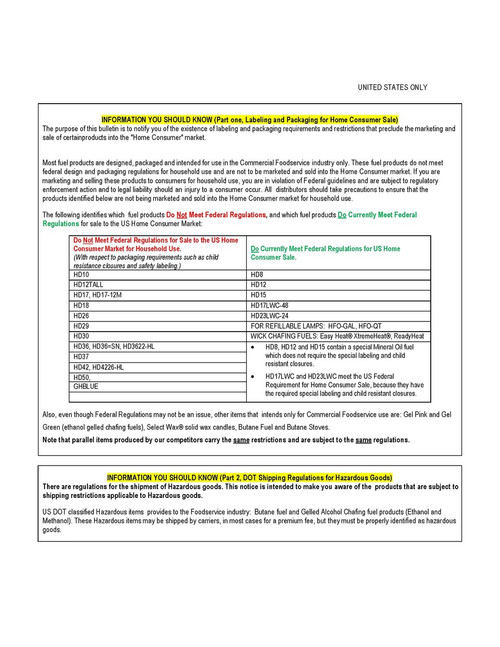 Legal Disclaimer: THIS PRODUCT DOES NOT MEET FEDERAL REGULATIONS FOR SALE TO THE US HOME CONSUMER MARKET. (With respect to packaging requirements such as child resistance closures and safety labeling.) THIS PRODUCT IS INTENDED SOLELY FOR COMMERCIAL USE, AND IS NOT RECOMMENDED FOR HOUSEHOLD USE. BUYER AGREES TO ASSUME ALL RISKS RELATED TO AND/OR ARISING FROM OWNERSHIP AND USE OF THE PRODUCT. BUYER AGREES TO INDEMNIFY AND HOLD SELLER HARMLESS FROM ANY AND ALL CLAIMS BROUGHT BY ANY PERSON OR ENTITY AGAINST SELLER, RELATED TO AND/OR ARISING OUT OF USE OR OWNERSHIP OF THE PRODUCT.